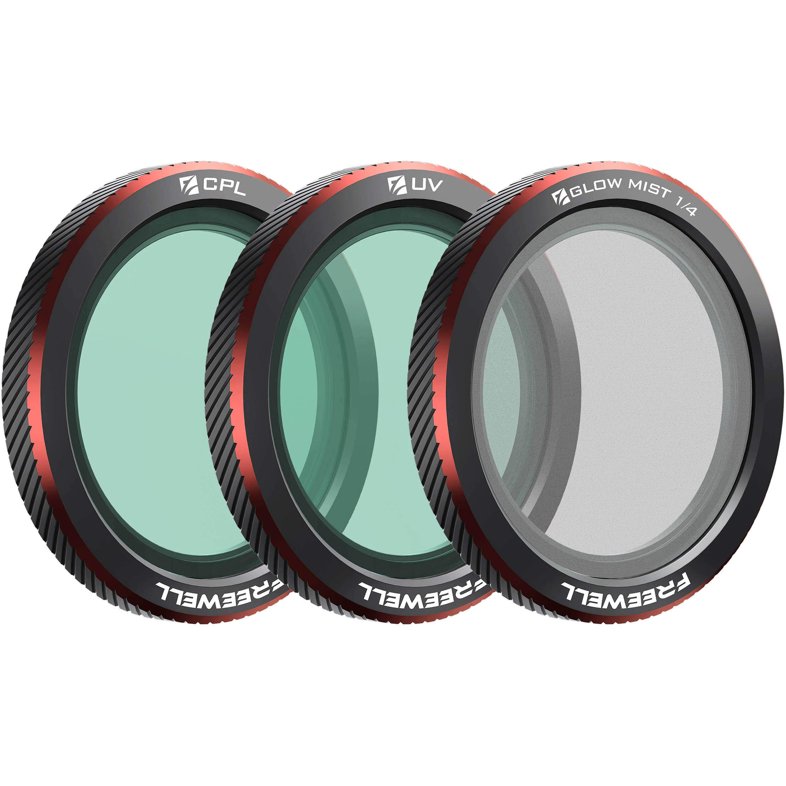 A UV szűrő védi az objektívet, miközben megőrzi a részletgazdag képtisztaságot. A CPL (cirkuláris polárszűrő) csökkenti a tükröződéseket és javítja a kontrasztot. A 1/4 glow mist szűrő lágy fényt és enyhe ködös, filmes hatást hoz létre.